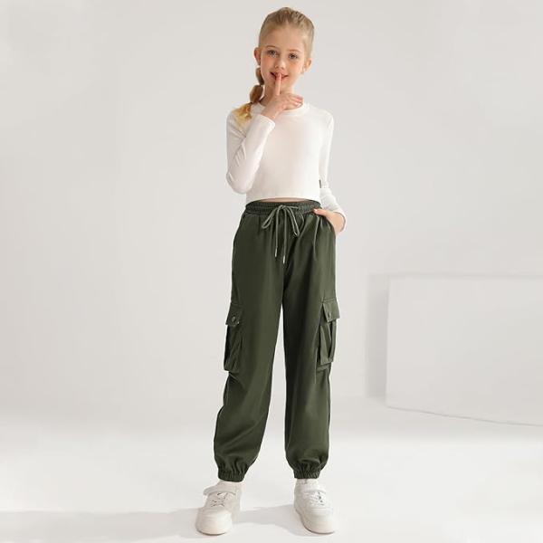 Girls Cargo Jogger Pants Parachute Pants with Elastic Waist and Pockets Cargo Trousers for Teens Girls 7-14 Years