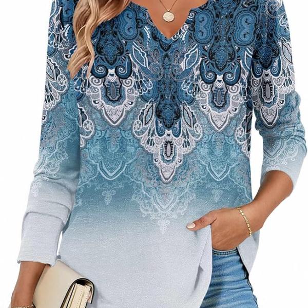 DESIGNS: Long sleeve(can be rolled up to be 3/4 sleeve), unique v neck highlighting beautiful neckline, curved hem to show graceful figures, loose fitting without any restriction. Solid color & trendy cute floral prints for your choice