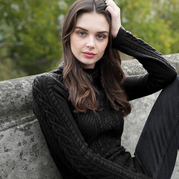 v28 Women Polo Neck Long Slim Fitted Dress Bodycon Turtleneck Cable Knit Sweater