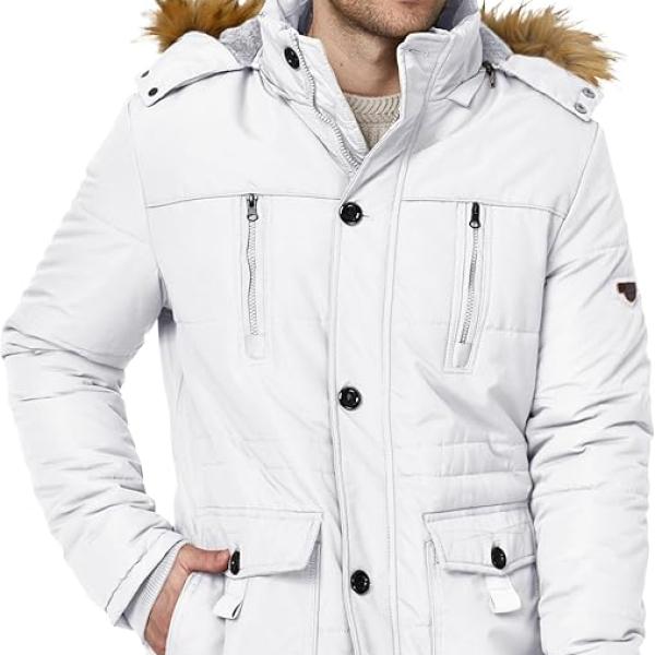 Tailored to your preference - You can style this mens parka however you want! It has an adjustable and detachable zippered hood as well as a removable faux fur trim if you prefer a simpler look.