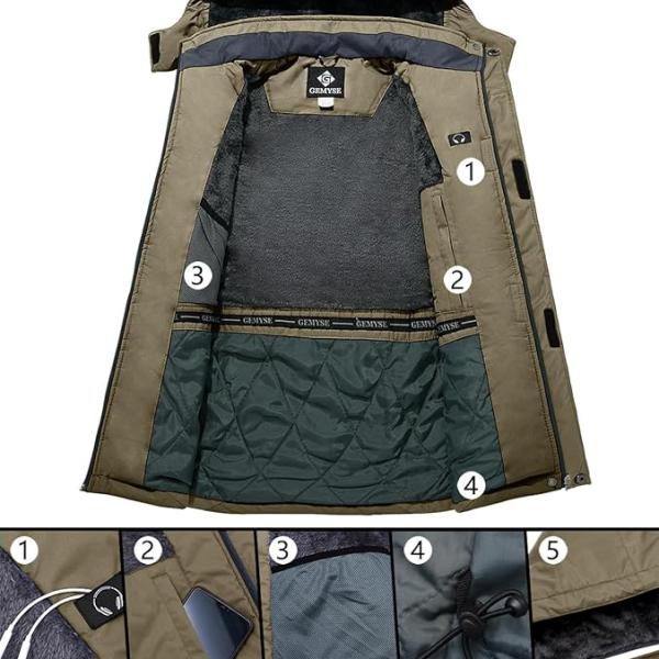 Practical Multi-Pocket Design:This winter coat for men includes 2 zippered hand pockets, 1 zippered chest pocket, 1 internal large mesh pocket, and 1 internal secure pocket—ideal for carrying your phone, wallet, passport, and more. An internal earphone line fixture offers added convenience.