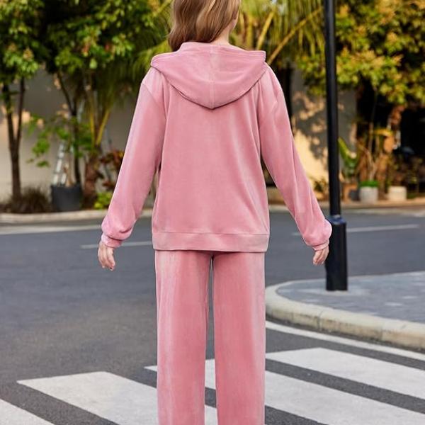 WARM FABRIC:Girls sweatsuits with a buttery-soft texture similar to velvet, lend a luxurious sheen to fashion look. Stretchy and drape, velour outside only, promise cozy wear all day