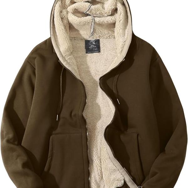 Autumn winter warm thicken heavy weight fleece sherpa lined full zip hoodie sweatshirt jacket coat made from high quality extra soft cotton fleece lining add more warmth and comfort, help block out cold and chill.